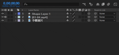 物件都準備好了,接著將所有圖層都Parents到手機圖片上,