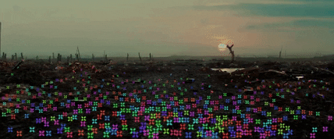 這邊可以注意到片段中間留下了空格,如同參考中,人物也會消失,透過幾何形進行轉場