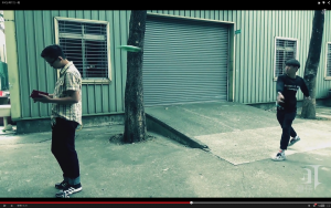 這次我們一樣是在雄工拍攝,寒假期間還是有一票人在旁邊看阿,可能是因為寒輔?真是辛苦了,偏偏這次鄭任志又要男扮女裝,真心為他捏了把冷汗,這次多了一個新演員偉翔,平常是團隊裡負責翻譯的,常跟外國人聊天英文很好,這天我們就只有我跟偉翔是雄工的學生,任志扮女裝的樣子還有被路過的老師看到,還有從車棚開車出來的老師經過將車窗搖下目瞪口呆的開車過去,由此可知,這就是童年的共鳴!