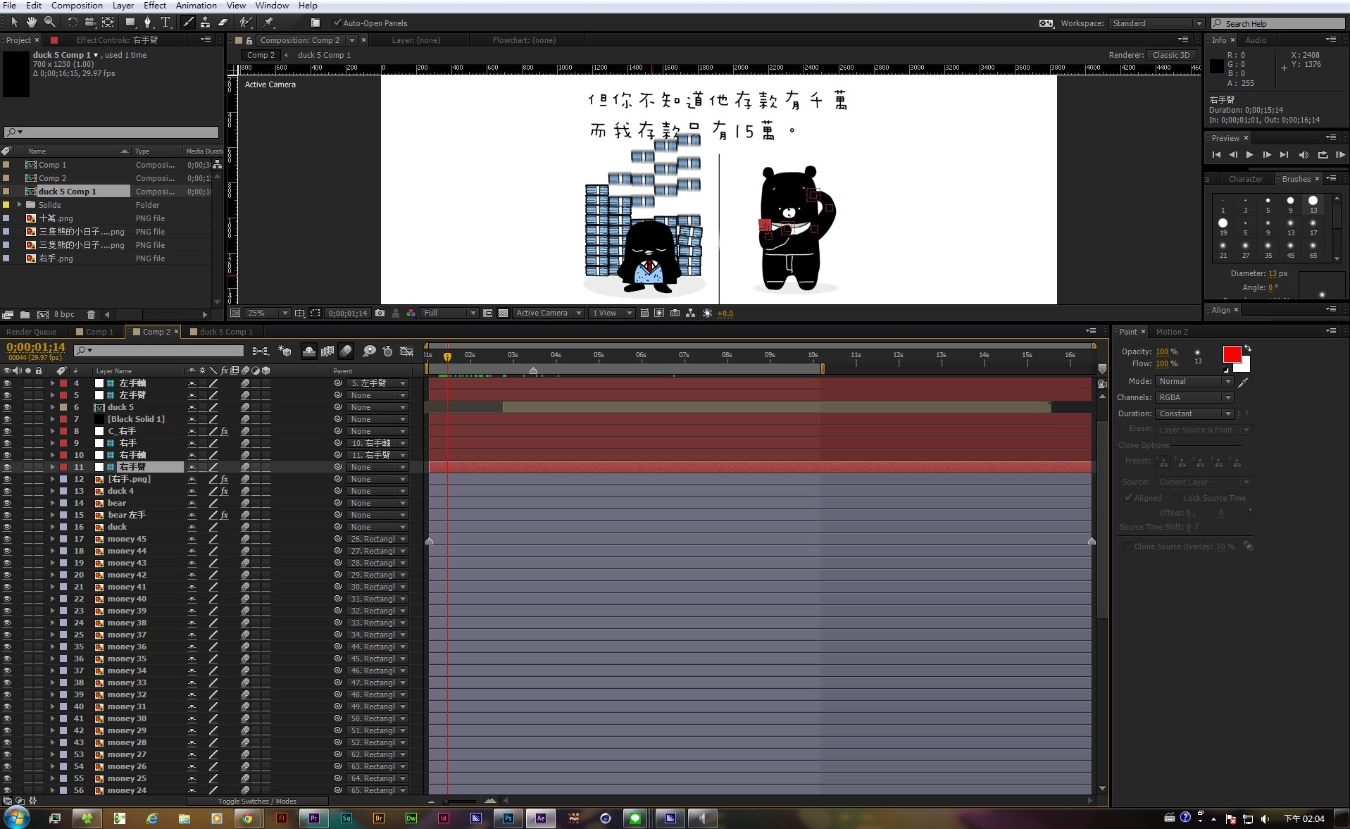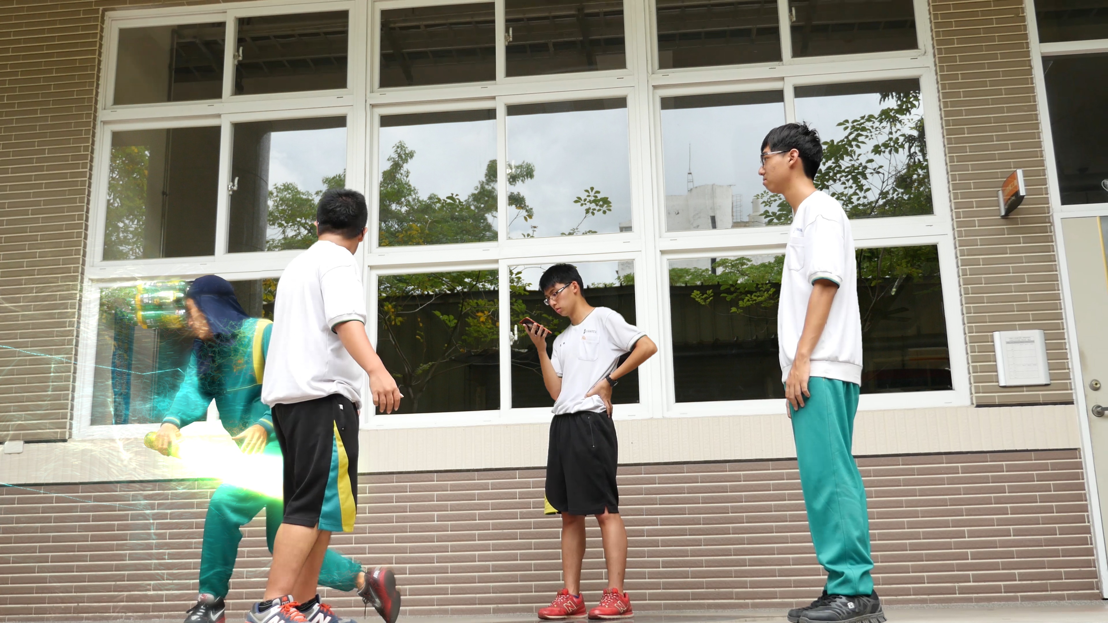 因為劇情是要警惕同學在上他的課時不要睡覺,所以當時下課我請我們班大家都不要離開教室協助我們拍攝,大家也都很配合,劇情內容非常中二,一般來說不可能讓筆做出那些動作,所以這次我們用MAYA先拉一個筆的3D建模,然後再貼上材質,光線運算,讓他融合到影片裡,這部片是我第一部把3D物件融入到影片中。